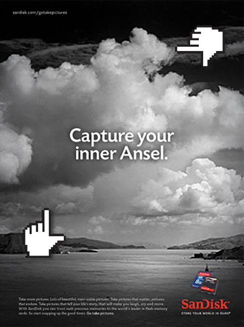 The client wanted a brand campaign that touted their marketplace leader position while expressing the spirit of excitement, passion and inspiration that is a huge part of the process of taking pictures. The digital hands framing device was a fun, graphical way to say 'we’re talking about digital photography' before you even read a word. My role in this campaign was Art Director and I conceived the digital hands concept.