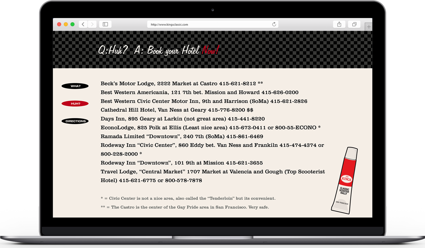 It was the tenth year and to be the last one using the mostly defunct Rally Kings moniker as the hosting entity for the West Coast’s largest gathering of vintage scooter enthusiasts held each year in San Francisco in August hosted by the Black Sheep Scooter Club.
