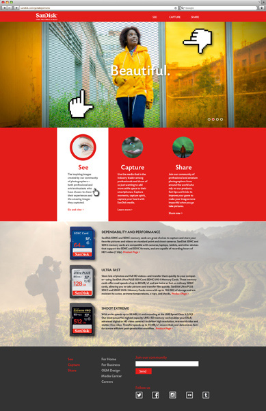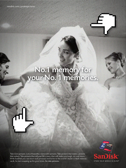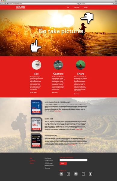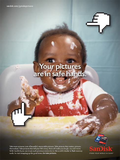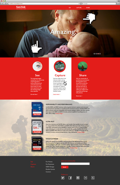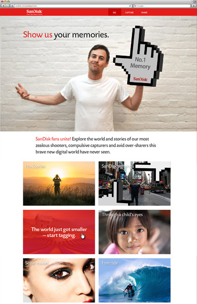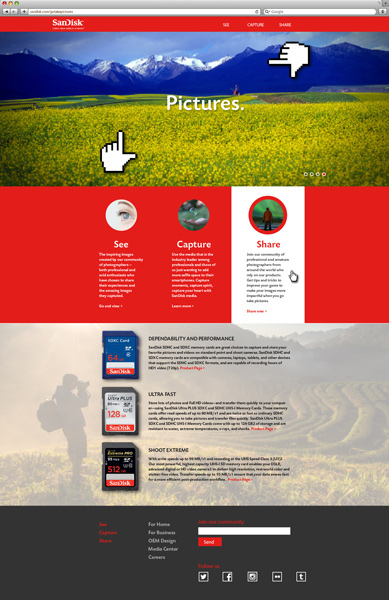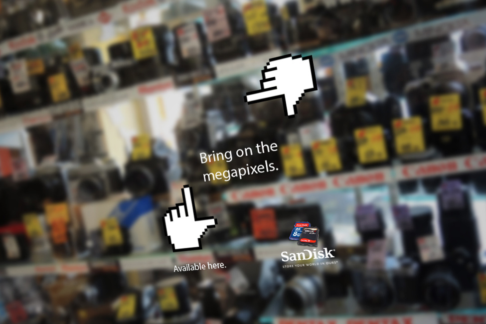 The client wanted a brand campaign that touted their marketplace leader position while expressing the spirit of excitement, passion and inspiration that is a huge part of the process of taking pictures. The digital hands framing device was a fun, graphical way to say 'we’re talking about digital photography' before you even read a word. My role in this campaign was Art Director and I conceived the digital hands concept.